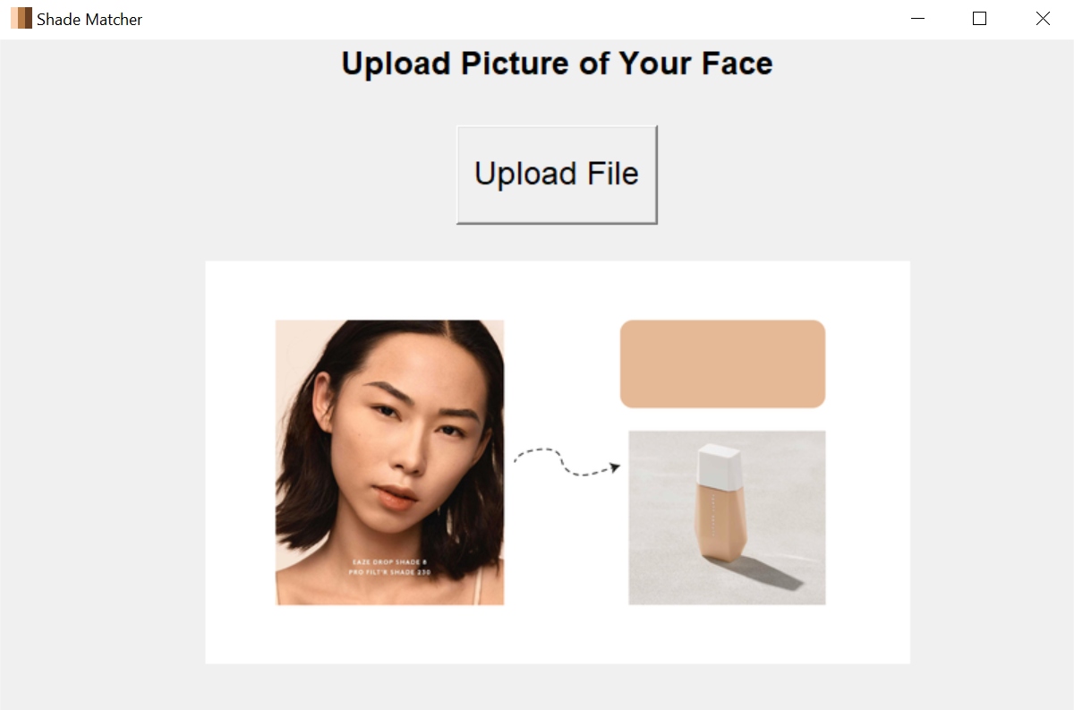 It uses K-means clustering, an unsupervised machine learning algorithms, to find the most dominante skin colour on an image. Then, the program suggests and directs user to the closest match in Fenty Beauty's foundation collection.