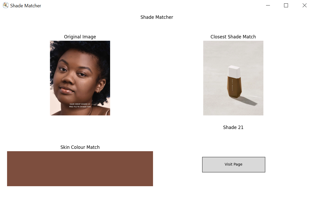Shade Matcher finds your skin colour match given a picture and suggests a foundation product of the closest shade match.