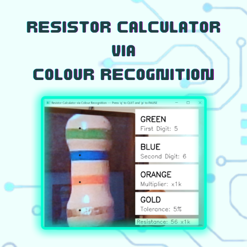 This program determines the resistance of 4-band resistors by recognising the colours and calculating the final value in real-time.